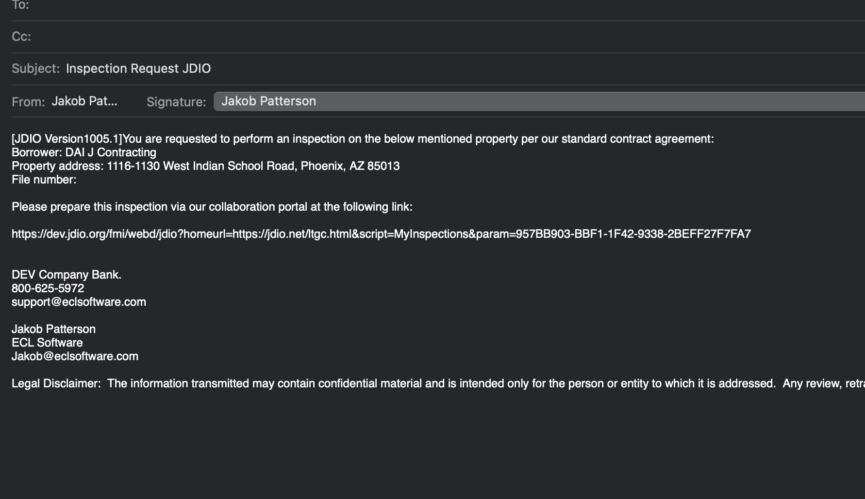 Then you can select the JDIO option for the inspection email or log and this will include a link directly to that inspection request that the inspector can use to fill it out.