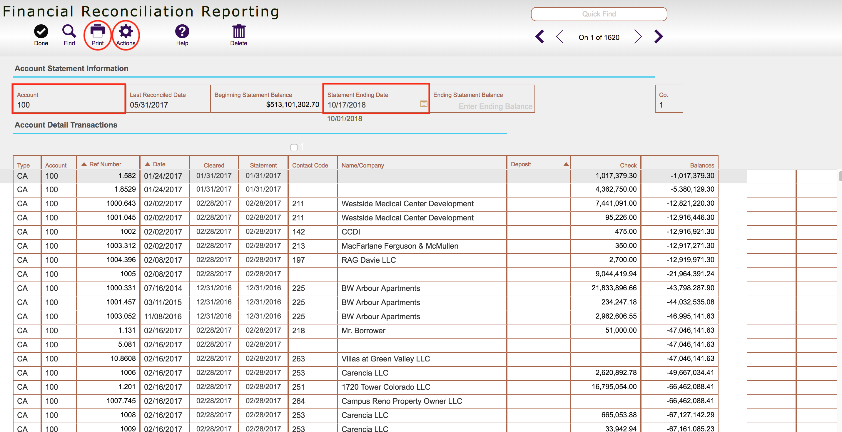 There are few Action items that do different finds according the the Statement Ending Date (you can change the date if wanted) and the Account at the top: