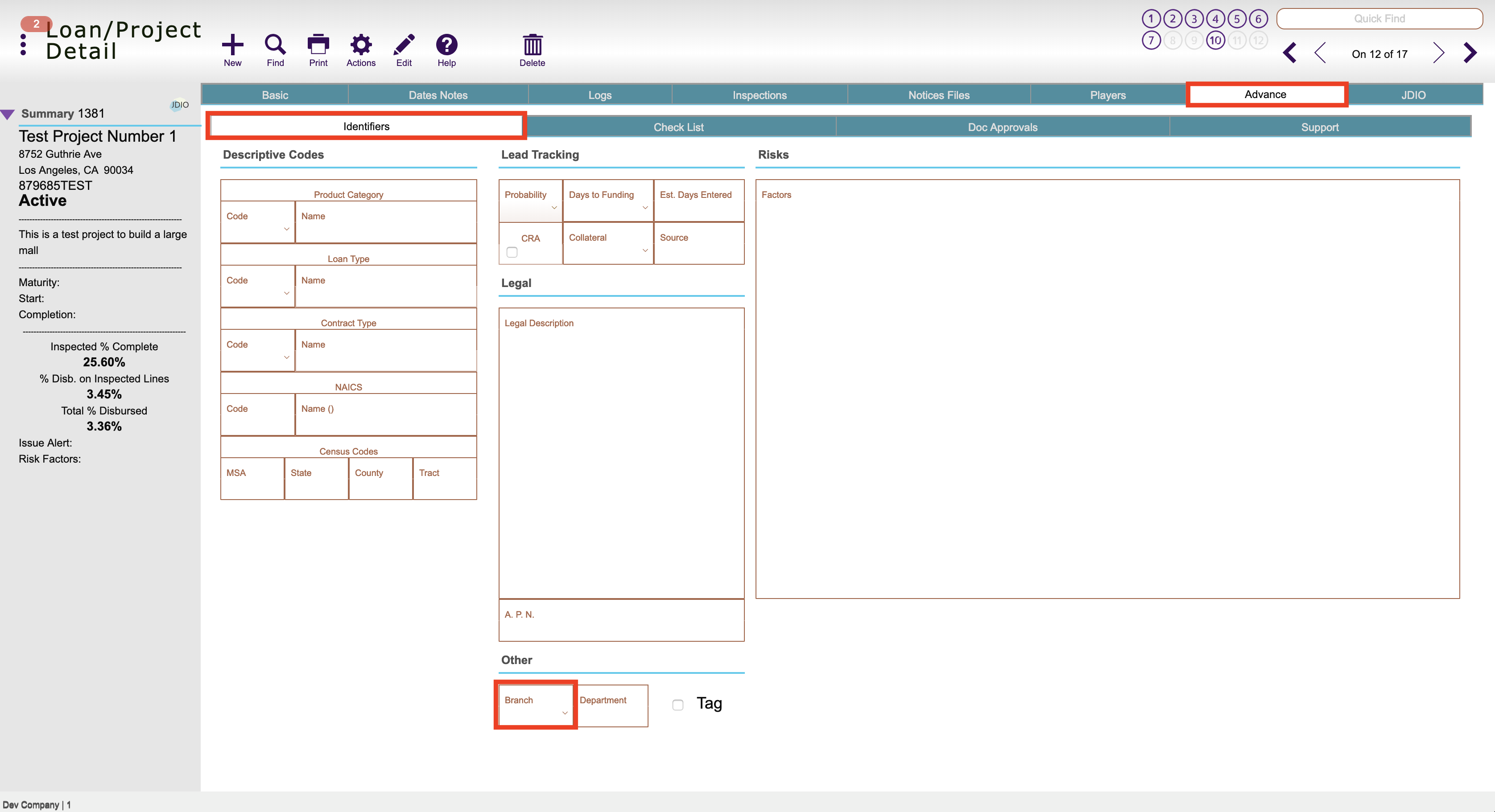 Setting up Different Bank Branches You are here: Home » FundControl8 Guides » Setting up Different Bank Branches Guide StepsTo create a new branch to use on a loan/project, first create a contact record to represent that branch. Make sure that it is the Company contact type and marked as Active 1Then you will be able to select that branch from the Branch drop down in the Loans Detail > Advance tab 2